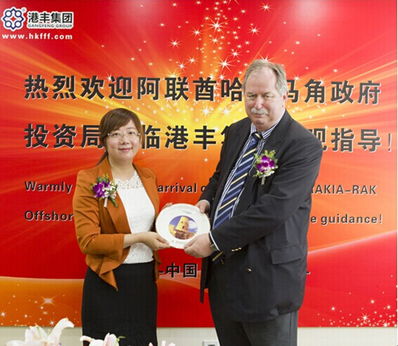 2014年5月27日上午,阿聯(lián)酋哈伊馬角政府投資局董事局總經(jīng)理Mr. Peter-Michael Shuster、隨行投資局代表黃冠騰先生、楊子燕女士蒞臨港豐集團(tuán)參觀考察,并與港豐集團(tuán)CEO魏曉嶸就阿聯(lián)酋哈伊馬角離岸公司注冊、國際經(jīng)濟(jì)及政策動態(tài)等趨勢話題展開座談。